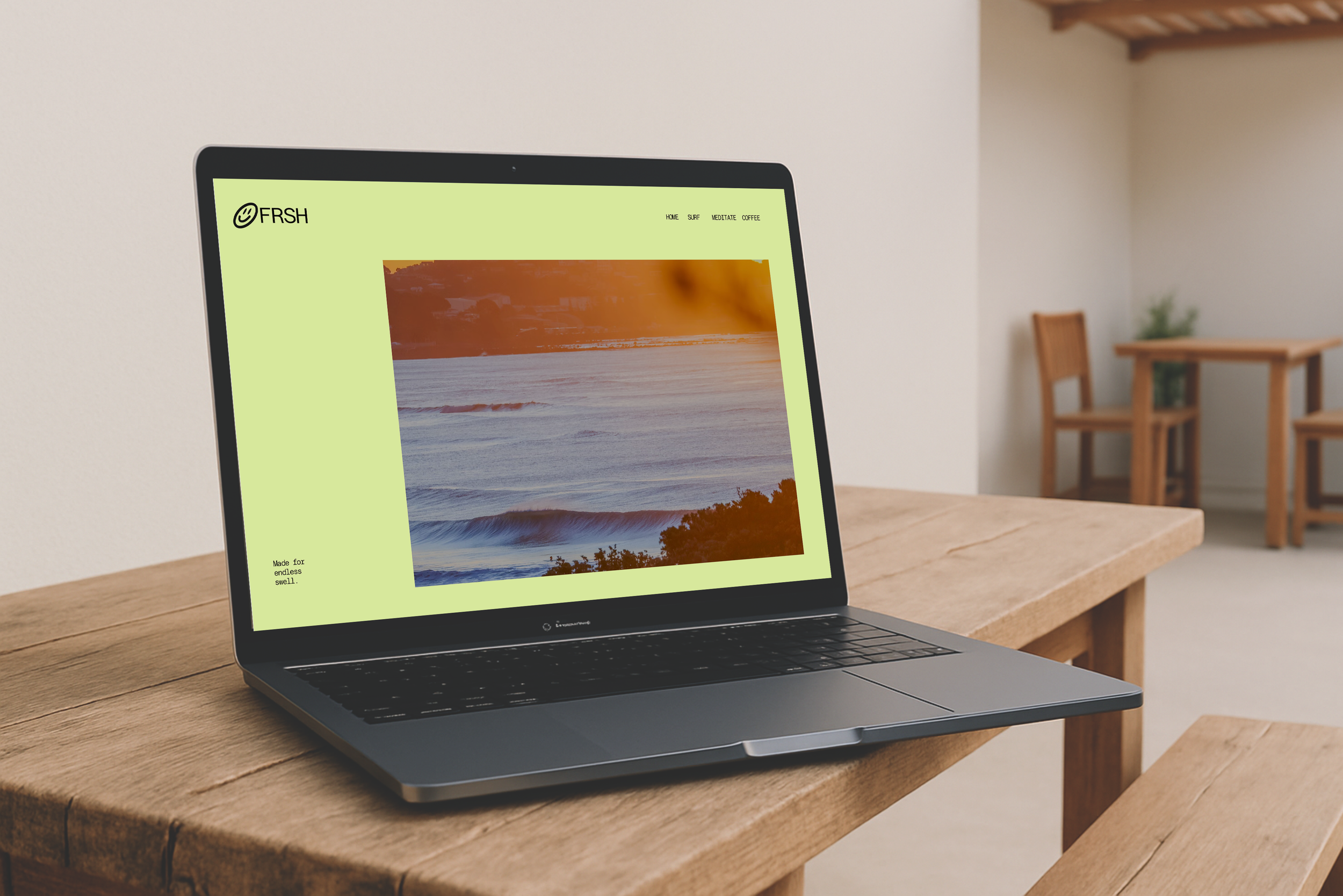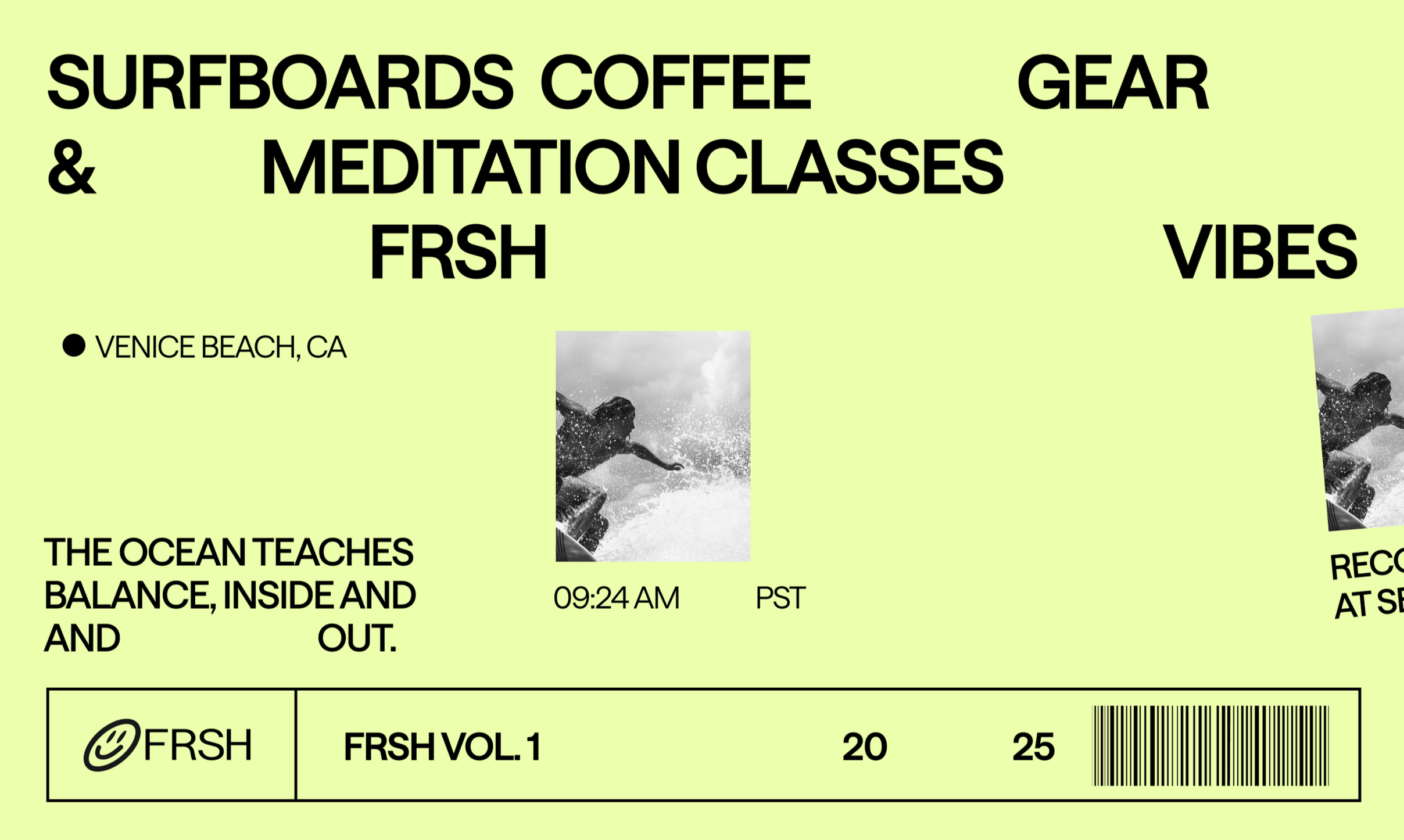 Frsh (2025) is a brand identity rooted in contrast: soft rain versus hard surf, serenity within force. The design takes cues from textures, gradient within imagery, and fluid line work. It embodies a mindful approach to surfing, with visuals that encourage pause, presence, and connection with nature.